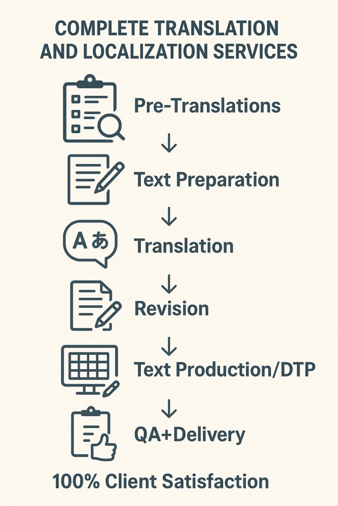 We provide comprehensive language and content localization services, tailored not only to translate words but to adapt your entire message—tone, format, cultural nuances, and domain-specific terminology—to your target audience. Our approach ensures: