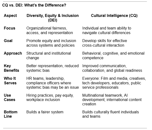 Discover Cultural Intelligence (CQ) Training designed for humans and AI. Enhance cross-cultural communication, reduce bias, and empower government, nonprofit, tech, and film industries.